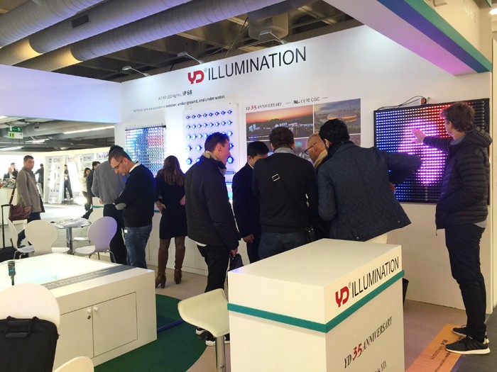與往年展位不同的是,今年勇電除了展示點(diǎn)光源、線條燈、大功率系列產(chǎn)品外,還將勇電旗下裝飾照明品牌——法拉沃系列燈具帶到了現(xiàn)場(chǎng),各系列產(chǎn)品布局合理、清晰呈現(xiàn),向參展的客戶展示著優(yōu)勢(shì)和吸引力。