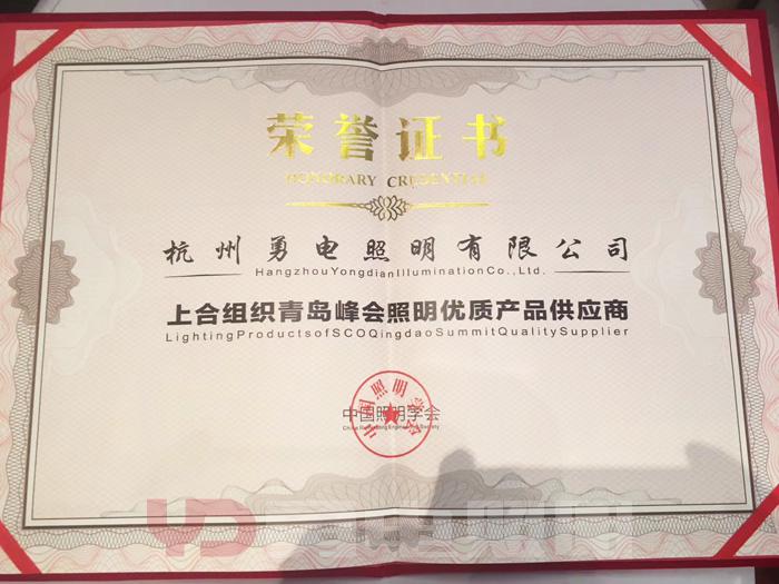 勇電照明榮膺“上合組織青島峰會照明優(yōu)質(zhì)產(chǎn)品供應(yīng)商”稱號