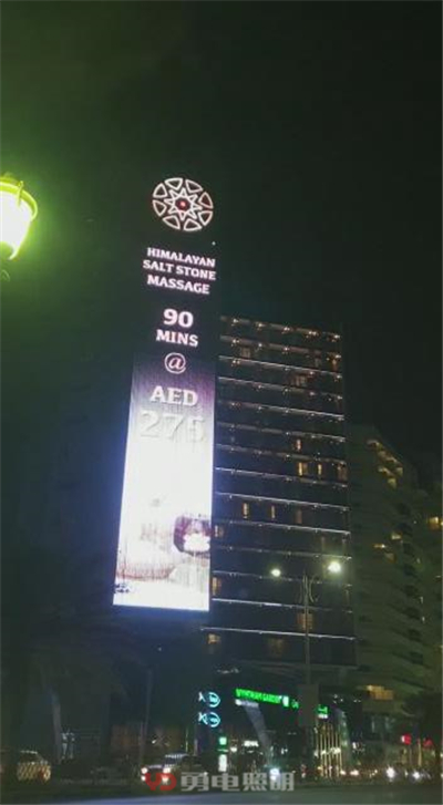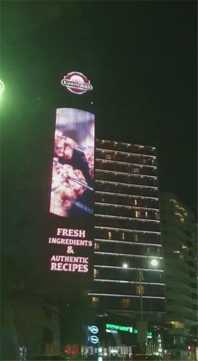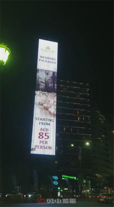 亮燈后的顯示屏一塊用于酒店內(nèi)部宣傳,另一塊用于出租廣告宣傳。