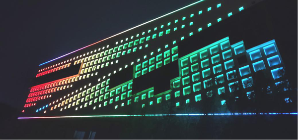 結(jié)合建筑特色和整體氛圍,“三館”外圍立面窗臺(tái)采用LED窗臺(tái)燈進(jìn)行點(diǎn)亮。同時(shí),在項(xiàng)目燈具上進(jìn)行了外殼噴塑處理,提升了燈具隱蔽性,在白天不影響建筑整體美感的情況下讓亮化達(dá)到 “見光不見燈”的效果。