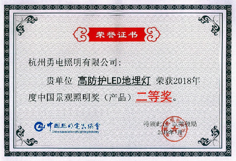 高防護(hù)型勻光LED地埋燈所獲榮譽(yù)
