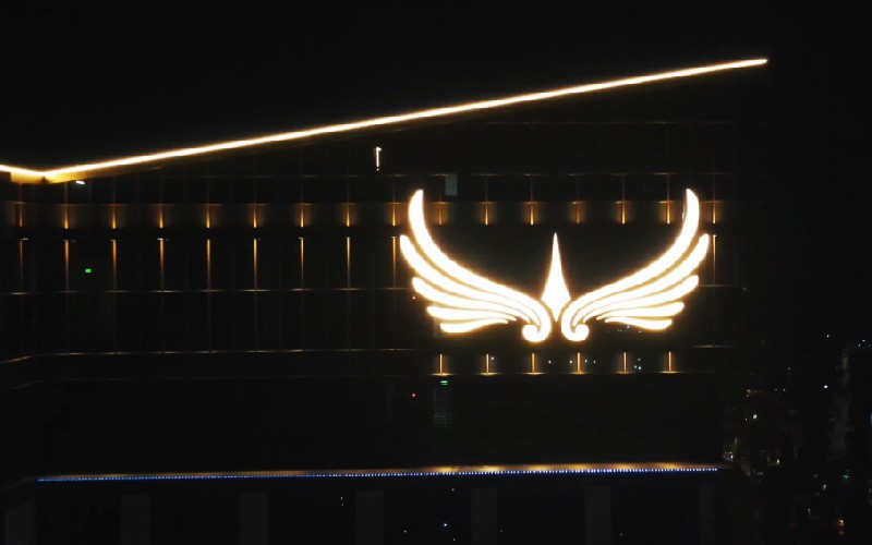 整個(gè)夜景照明可謂是勇電產(chǎn)品在北緯20度的獨(dú)家展會(huì)!燈具使用充分結(jié)合建筑形態(tài),樓體立面采用勇電二次封裝Φ30點(diǎn)光源,創(chuàng)造富有表現(xiàn)力的聯(lián)動(dòng)立面,體現(xiàn)建筑的特征和韻律;LED線條燈勾出樓體外側(cè)輪廓,增強(qiáng)了建筑的質(zhì)感。