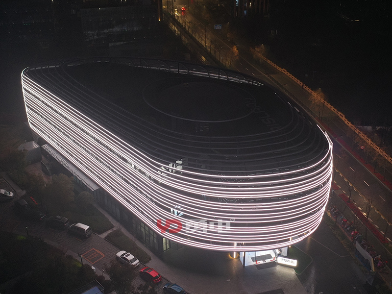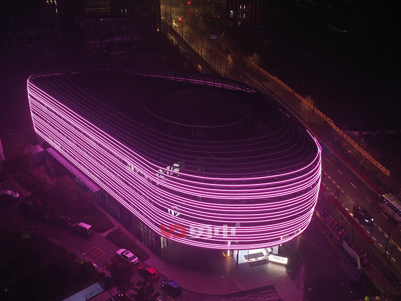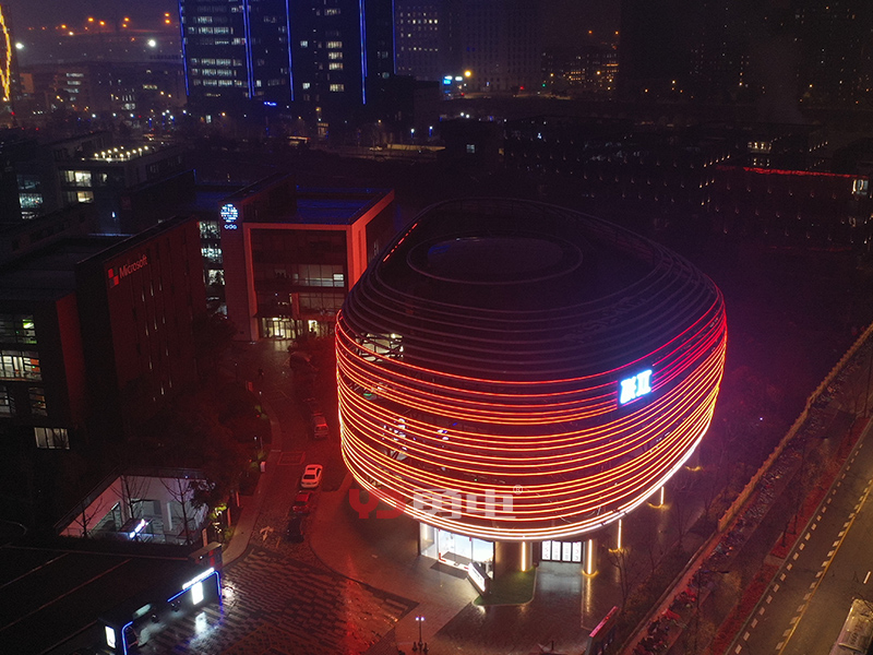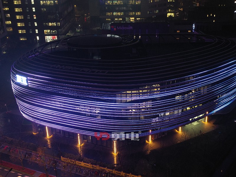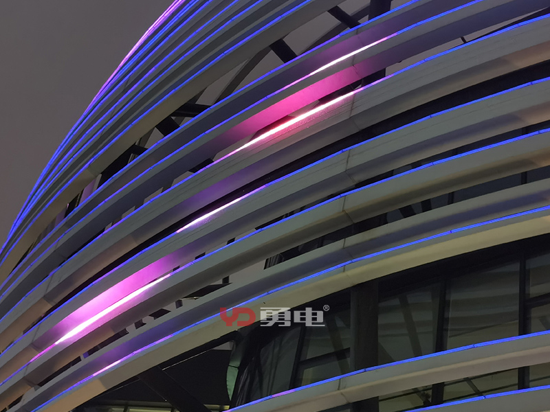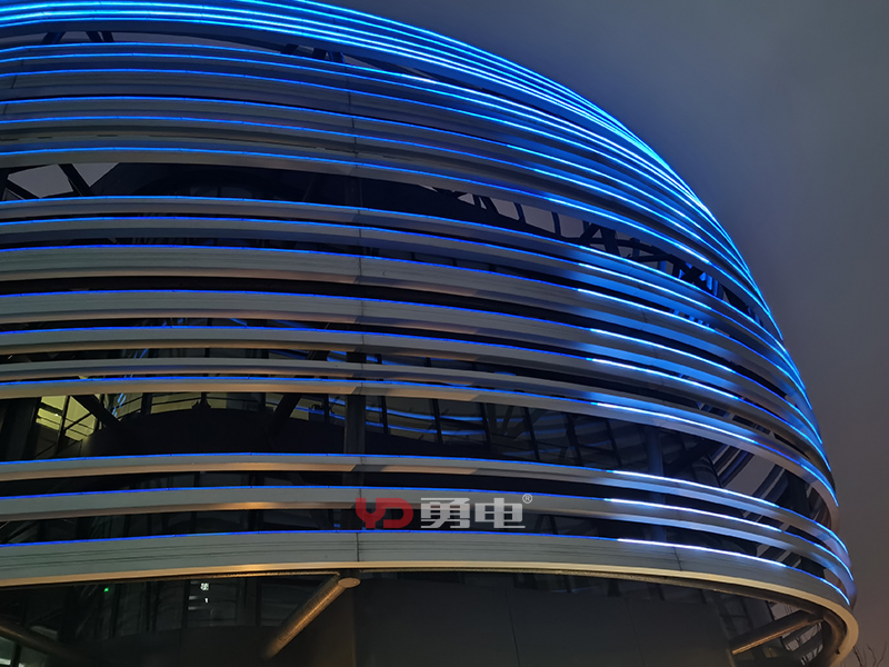 該項(xiàng)目照明主體為張江人工智能展廳,樓體外型充滿未來(lái)科技感,建筑樓高23米,樓周長(zhǎng)185米,采用勇電二次封裝LED線條燈,用線強(qiáng)調(diào)建筑的輪廓,將環(huán)形立面刻畫出新形態(tài),豐富建筑肌理,讓建筑在夜間充滿活力!