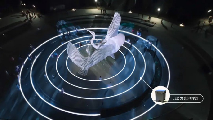 光隨曲動!IP68勻光地埋燈打造聲光一體廣場雕塑