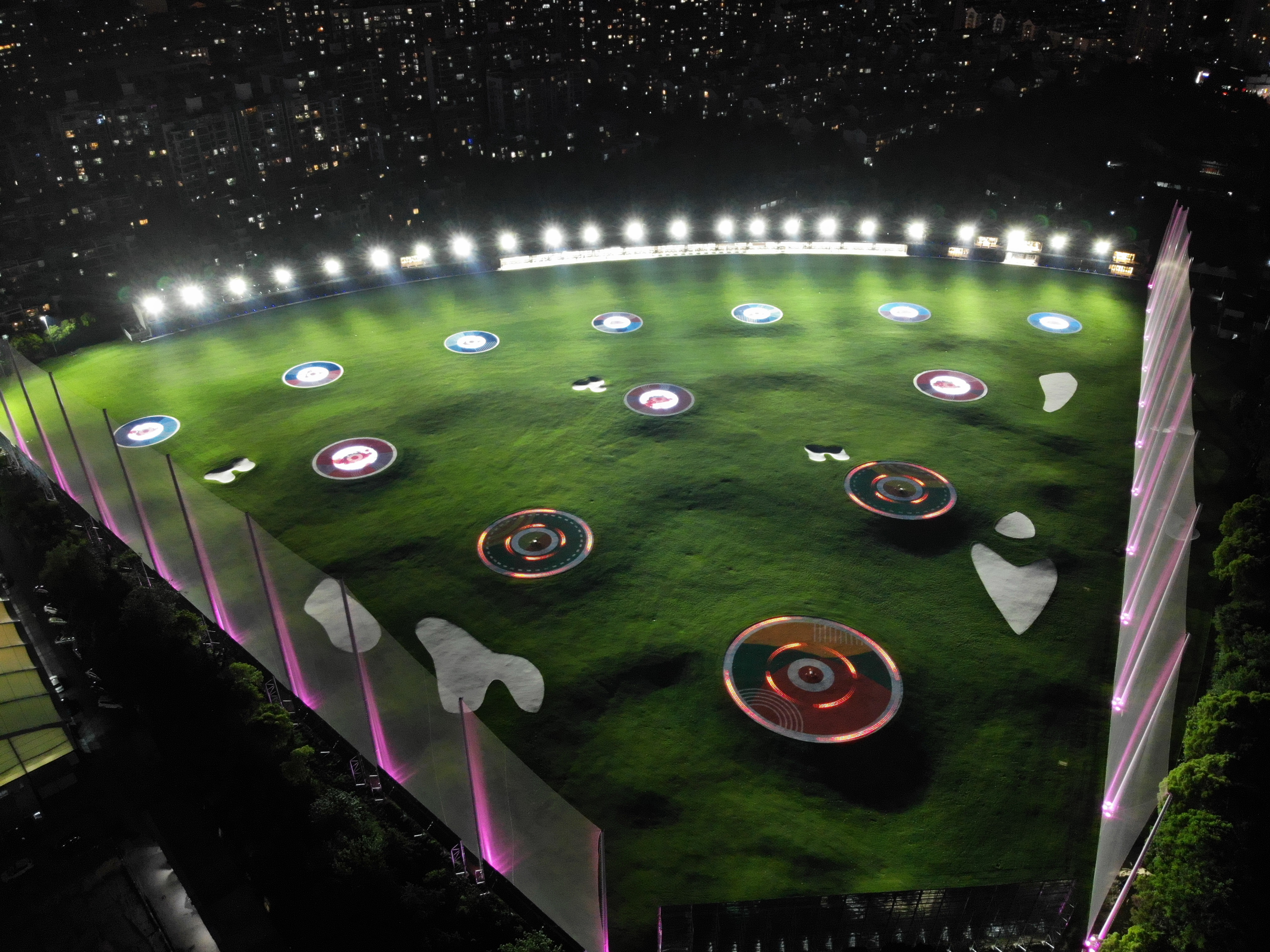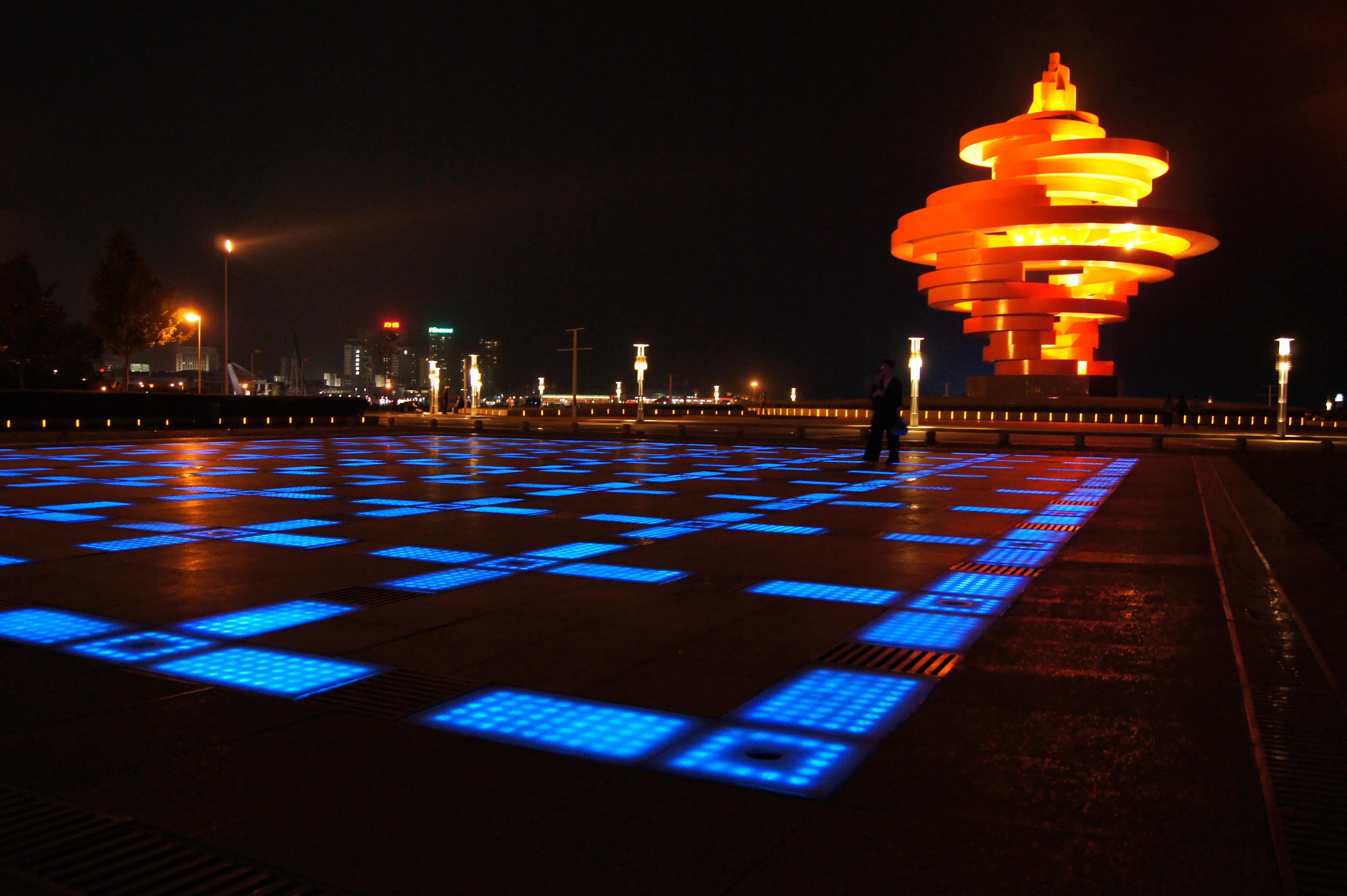 通過運(yùn)行于廣場地面,采用RGB可控制地埋燈,有規(guī)則的安裝形式,安裝裝線狀或點(diǎn)成面的形式,從而通過程序控制形成動(dòng)態(tài)效果或者圖案,進(jìn)而起來裝飾以及引流的裝燈形式